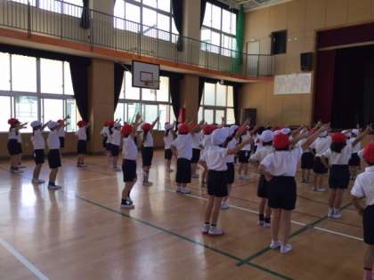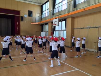 運動会の練習が始まりました。一生懸命ダンスの練習をしています。