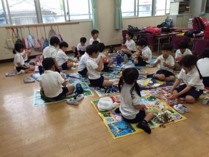 でも、教室でビニールシートを広げて愛情いっぱいのお弁当を食べ、その後、教室でゲームをしたり、運動場で思いっきり遊んだりと、一日楽しく過ごすことができました。