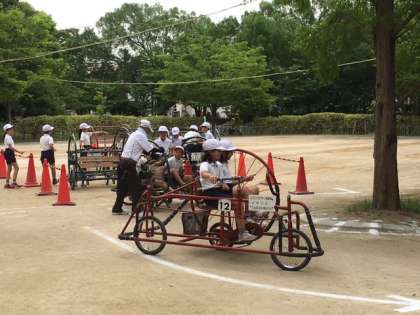 2つのグループに分かれて、自転車博物館で自転車の歴史について学習したり、昔の自転車のレプリカに乗って楽しんだりしました。ちょっと練習するといろいろな自転車を乗りこなし、楽しく過ごす子どもたちでした。