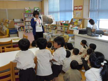 図書館では、1年生の先生が「ほんとのおおきさ 水族館」という本の紹介をしていました。今年は、子どもたちが40冊以上の本を読むことを目標にしています。たくさんの本に出会って感性豊かな子に育ってほしいです。(校長室より 6月3日)