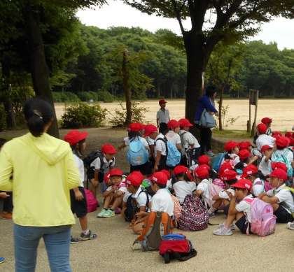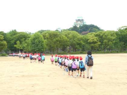 1年生が、初めての遠足に行きました。大阪城に着くころに雨が降ってきました。予定を変更し大阪城の天守閣を見学後、大阪城公園駅から学校に帰ってお弁当とおやつを食べました。電車の中や道路の歩き方は、とっても素晴らしい態度でした。(校長室より 6月7日)