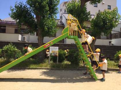 最後に、大野東公園で遊びました。虫や花を探したり遊具で遊んだりして、仲良く楽しく活動することができました。
