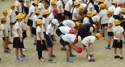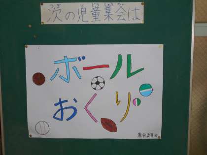 今朝の児童集会は、集会委員会による「ボールおくりゲーム」でした。頭の上から、股の下をくぐらせて、腰の周囲をまわらせて、その場ドリブルをしての4つの方法で行いました。低学年の児童も上手にボールを操作していました。(校長室より 6月9日)