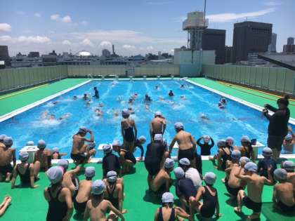 1時間目、5年生がプール開きでした。今の時点での泳力を確認し、これからの目標を立てる子どもたちでした。