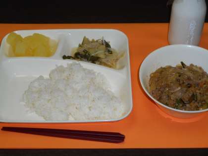 本日の給食メニューは、マーボーはるさめ・チンゲンサイともやしの甘酢あえ・りんご(缶)・ご飯・牛乳です。子どもたちへの給食クイズは、今日のはるさめは何からとった「でんぷん」で作られているものでしょうか?○じゃがいも○とうもろこし○緑豆 でした。(校長室より 6月24日)