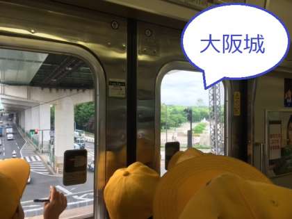 車内から見える建物を熱心にワークシートにチェックしていました。中央市場や京セラドーム、あべのハルカス、大阪城など、有名な建物に目をキラキラさせていました。