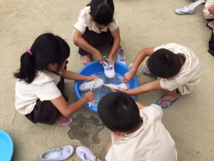 くつの中も外も丁寧に、一生懸命洗う姿が見られました。