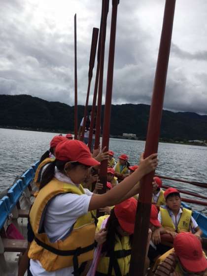 午後のカッター訓練が実施できました。初めは、オールをこぐ息がそろわず、なかなか進みませんでしたが練習するうちにうまく合うようになりました。明日も頑張ってもっと遠くまで行けますように!