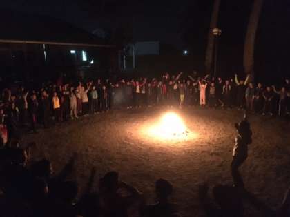 火を囲んで、みんなで歌ったりゲームで盛り上がったり、楽しいひと時を過ごしました。