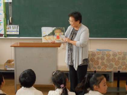 2時間目の休憩時間に、1年生の教室で絵本の読み聞かせをしていただきました。1組は大田さん、2組は松原さんに絵本を読んでいただきました。みんなとってもよく聞いていました。(校長室より 9月16日)