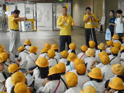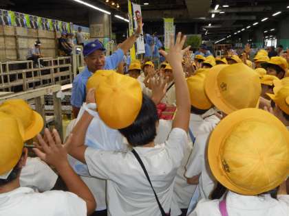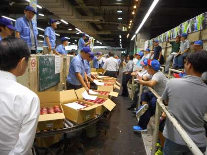 4年生は、中央市場の見学に行きました。市場の方より見学の説明を受け、青果物場に案内されました。そこでは、せりが行われていました。せりの様子や仕方を教えていただきました。また、青森産の特選りんごもいただきました。(校長室より 10月3日)