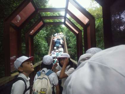 公園内では、ソラードを通って空中散歩をしたり、ドングリを拾ったりと、自然を味わう学習に取り組んでいるようです。