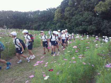 秋空の下、4年生が万博記念公園に遠足に出かけました。