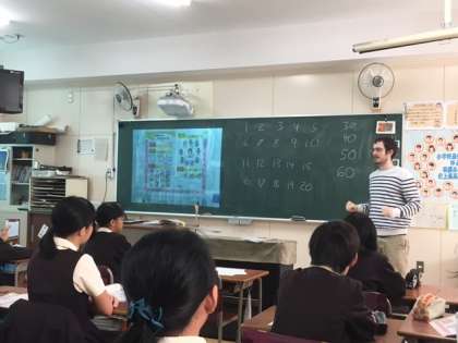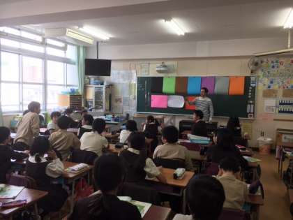 6年生の教室では、1〜60の数字を英語で発表していました。