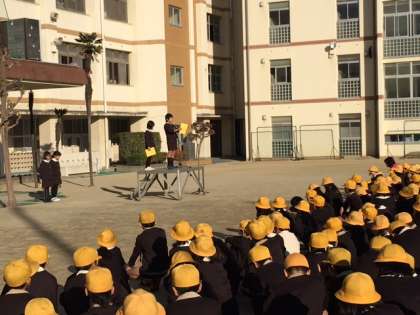 また、4年の児童が3学期の目標について発表しました。子どもたちそれぞれの苦手なことを克服するために何をどう頑張るか発表しました。堂々とした様子がよかったです。