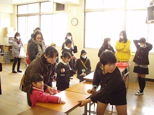 ロッカーの的に向けて、新聞ボールを投げ入れます。チャンスは3回!最高点は3000点でした。どの学年のお友達も楽しく参加していました。