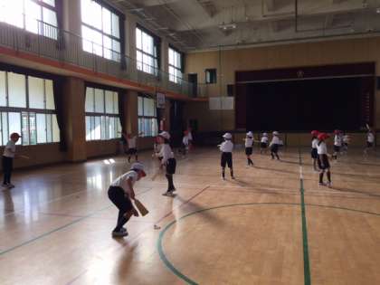 21日の土曜参観では、講堂で、けん玉・お手玉・こま回し・あやとり・めんこ・だるま落としをします。友だちやお家の人たちと一緒にするのが楽しみです。  (1.19 1年)