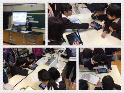 先日、野田のまちにはどのような安全な場所や危険な場所があるかを調べ、画像におさめました。それをグループでタブレット端末で加工し、プレゼンテーション資料を作成しました。作成する過程でグループで意見を交流し、よりみんなにわかりやすいものを作っていきました。