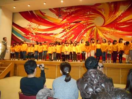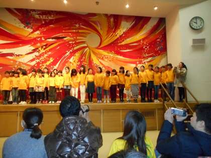 演奏した曲名は、「名探偵コナン」「ブラジルの水彩画」「木星(組曲「惑星」より)の3曲でした。子どもたちは、3曲ともいろいろな楽器を担当しみんなで楽しく演奏してくれました。明日は、全校朝会で演奏してもらいます。(校長室より 2月19日)