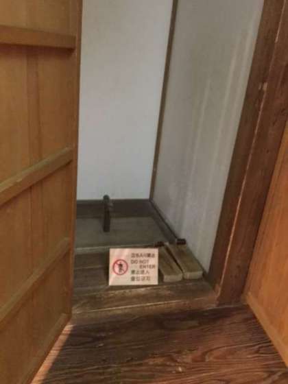 次に、行燈の説明や蔵も見せていただきました。普段は閉まっている蔵ですが、特別に扉を開けてくださいました。とても分厚い扉にとても驚いていました。説明してくださった方が『30cmくらいあるねんで』と言うと、みんな目が点になっていました。