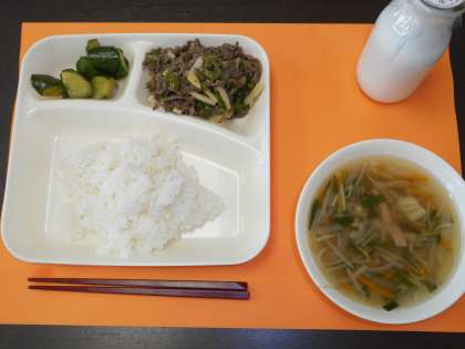 本日の給食メニューは、チンジャオニューロウスー・ハムと野菜の中華スープ・きゅうりの辛みづけ・ご飯・牛乳です。チンジャオニューロウスーに使われているピーマンは、皮膚や粘膜を強くする働きのあるビタミンCをたっぷり含んでいます。牛肉、たけのことともに、おいしくいただきました。(校長室より 6月6日)