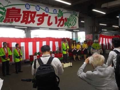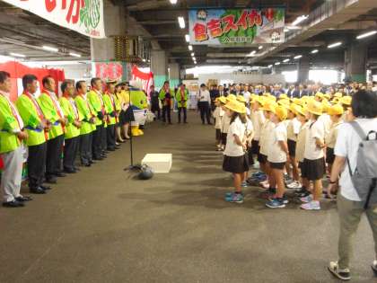 3年生は、JA鳥取が主催する「鳥取すいかセレモニー」参加のため、中央市場に行きました。中央市場の方から、青果の値段を決める「せり」の仕方や様子を教えてもらいました。「鳥取すいかセレモニー」に参加し、「野田のまちの歌」を元気よく歌いました。           (校長室より 6月8日)