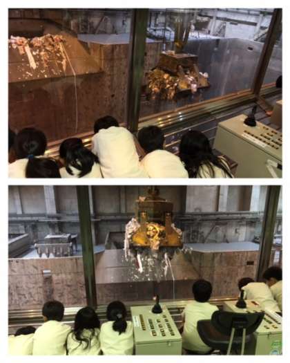 ごみをためる「ごみピットの様子」や、ごみを燃やす「炉」の様子を見て大興奮の子どもたちでした。