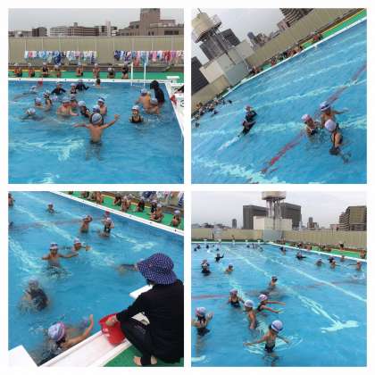 少し寒かったのですが、子どもたちはたくさん水しぶきをあげて、元気に水中を走ったり、泳いだりしていました。