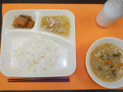 本日の給食メニューは、さけのさんしょう風味焼き・みそ汁・とうがんの煮物・ご飯・牛乳です。とうがんの旬は、7月〜9月です。切らないで丸のまま風通しのよい涼しい所に置いておけば、冬まで保存できるので「冬」の「瓜」と書いて「冬瓜」と言うそうです。冬瓜の煮物は、煮あげた冬瓜に、生姜汁、みりん、塩、淡口醤油で味付けされとろみをつけています。生姜汁の香りがよくきいていました。(校長室より 7月3日)