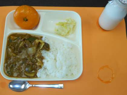本日の給食メニューは、夏野菜のカレーライス・キャベツのサラダ・みかん(冷)・牛乳です。夏野菜のカレーライスには、たまねぎ、なす、ピーマン、かぼちゃ、トマトが入って牛肉と合わさり、季節感の感じられるカレーライスでした。なすは、日本全国の畑やハウスで栽培されているので、1年中食べることができる野菜です。(校長室より 7月14日)