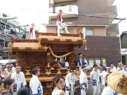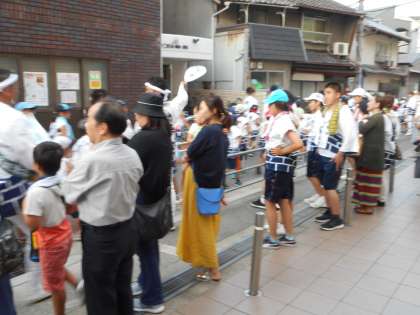 7月19日午後2時40分、野田恵美須神社を宮出した地車は、区役所前〜新家公園〜野田小学校前にやってきました。本校の子どもたち約100名も曳き子として参加し、小学校で解散しました。 (校長室より 7月19日)
