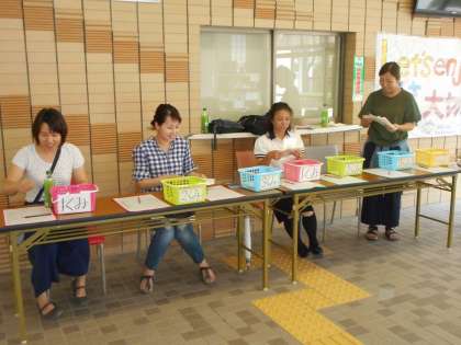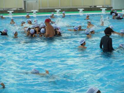 PTAの方々には、玄関で受付をしていただいています。今日のプール開放は、約350名の児童が参加しました。(校長室より 7月21日)