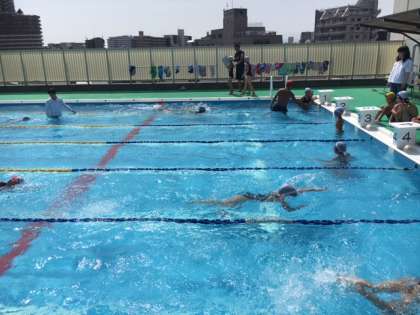 初日は5mも泳げなかった児童が多かったのですが、最終日の記録会では25mをはるかに超え、50m〜400m泳いだ子が続出しました。残念ながら25mに届かなかった児童も、あともう少しというところまでいきました。