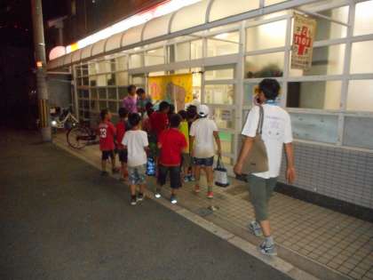 キャンファイヤーも終わり、お風呂タイムです。クラス毎に、地域の「栄湯」さんにお世話になります。8:30〜10:00の貸切タイムです。ご協力ありがとうございます。