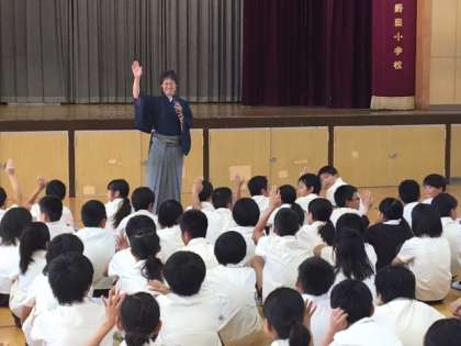 子どもたちは最初は独特の発声や動きに戸惑いながらも、次第に能の世界に入り込んでいきました。
