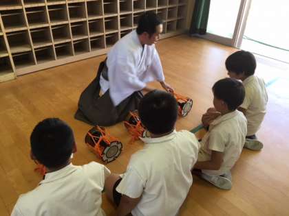 鼓を打つ時には声を出すのですが、恥ずかしくてなかなか声が出せない子や、逆に大きな声を出して褒められている子など様々でした。