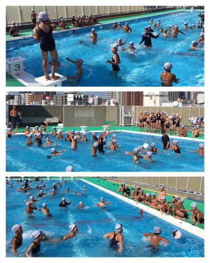 次に、クラス対抗「水中バスケットボール大会」がありました。プールに浮かぶボールをおいかける子どもたち。みんなの真剣な表情がよかったです。