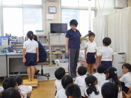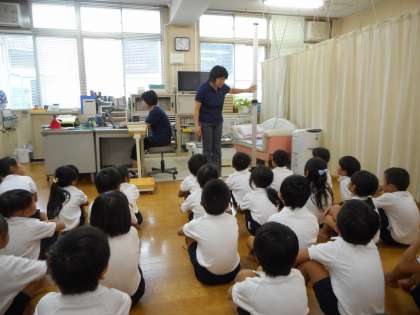 先週より発育2測定が行われています。今日は、1年生の発育測定でした。今日で2学期の発育測定が終了します。養護教諭の上江先生からは、インフルエンザの状況とその予防についてのお話がありました。区内でも8月下旬からインフルエンザによる休業も出ています。最近は、季節など関係なくインフルエンザの罹患も見られます。日常の手洗い・うがいの習慣が大切だと思います。(校長室より 9月12日)