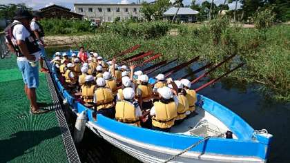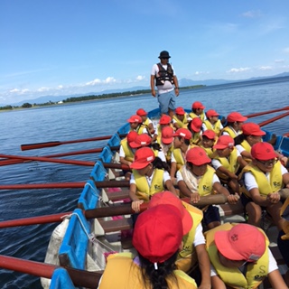もう1つのグループはカッター訓練です。3メートルもの大きなオールを、チームみんなで息を合わせて漕がないといけません。はたしてうまくいくのでしょうか!??