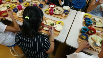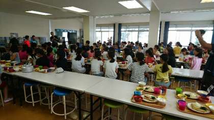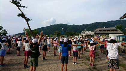 自然体験学習2日目です。今日も天気が良いようです。子どもたちは6時30分に起き、元気に朝の集いをしました。朝食をしっかり食べ、カッター訓練(2日目)にむけてエネルギーを蓄えています。