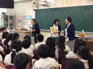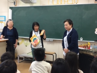 1年生「きつねのよめいり」、2年生「ソメコトオニ」、3年生「あなのはなし」など色々なお話を聞かせていただきました。絵本の読み聞かせや言葉遊びもしていただき、こどもたちも楽しんでいる様子でした。