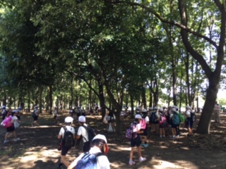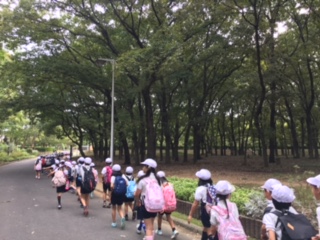 秋の遠足は、大泉緑地に行きました。大きい大きい滑り台で遊んだり、どんぐりを拾ったりして楽しみました。公園では、ゴミ拾いタイムを設け、来た時よりもきれいにしました。電車の中でも静かに過ごし、マナーを守ることができました。(10.4 3年)