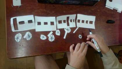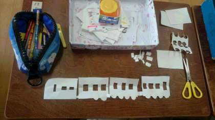 はさみを使って紙を切り抜いたり、のりで貼り付けたり。集中して取り組んでいます。