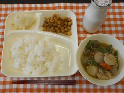 本日の給食メニューは、鶏肉と野菜の煮物・じゃこ豆・かぶのゆず風味・ご飯・牛乳です。かぶのゆず風味は、かぶを蒸した後、塩、酢、淡口しょうゆ、ゆずを合わせて煮たものをかぶにかけてあえたものです。かぶは、11月から2月が旬の時期で甘みがあっておいしいです。 (校長室より 12月8日)