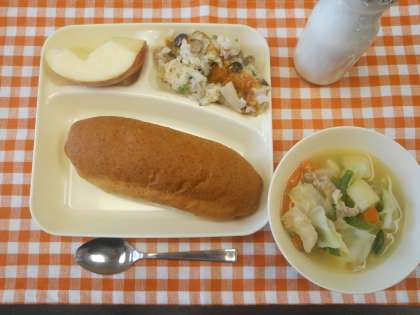 今日の給食メニューは、鶏肉とじゃがいものスープ煮・きのこのドリア・りんご・ライ麦パン・牛乳です。きのこのドリアには、エリンギ・マッシュルーム・しめじが入っています。とってもクリーミーな味でおいしくいただきました。エリンギは、イタリア、フランス、ロシアなどで山や野に自然に生えているきのこです。もともと日本には無いきのこでしが、平成5年に愛知県ではじめて栽培に成功しました。今では、よく使われている食材となっています。(校長室より 12月22日)