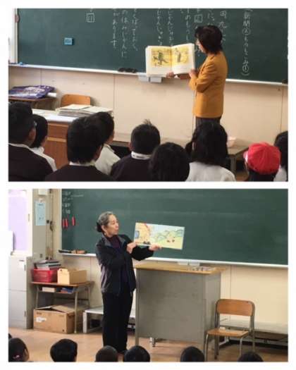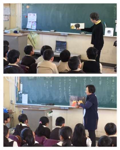 今日は2年生の児童が、図書館ボランティアの方々や教頭先生に絵本読み聞かせをしていただきました。「シチューはさめたけど・・・」「十二支のはじまり」などの絵本を紹介していただきました。絵本の話を聞き、その世界に入り込んでいく子どもたちでした。