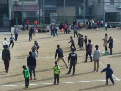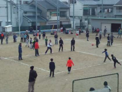 連日の寒さが心配でしたが、気持ちの良い日差しを浴びて、200名ほどの参加がありました。子ども同士はもちろんのこと、子ども対大人の試合は盛り上がりも最高潮で運動場に歓声が響き渡りました。寒さも吹き飛び汗びっしょりで試合を楽しむ参加者の様子を見ていると元気が出てきます。おいしい手作りの豚汁も大好評!