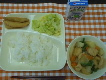 本日の給食メニューは、わかさぎフライ・一口がんもとじゃがいもの煮物・あっさりキャベツ・ご飯・牛乳です。わかさぎは、ししゃもと同じキュウリウオ科の魚です。給食に出る「わかさぎフライ」は、新鮮なわかさぎをまるごとフライにしていて、魚にあるくさみや苦みが少なく、骨ごと食べることができます。とってもおいしくいただきました。 (校長室より 2月15日)