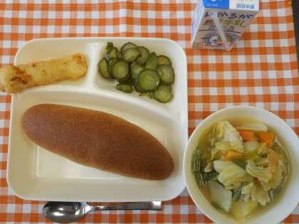 本日の給食メニューは、いかてんぷら・スープ煮・きゅうりのピクルス・ライ麦パン・牛乳です。いかてんぷらは、ムラカキイカが使われており、厚みのあるボリュームのあるてんぷらでした。いかは種類が多く、世界中で約500種類もあり、あらゆる海で生息しています。食べることができるいかは、15〜20種類です。(校長室より 2月20日)