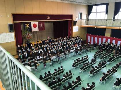 式の最後には、2年生が歓迎の言葉や歌・合奏をプレゼントし、和やかな式となりました。
